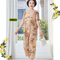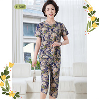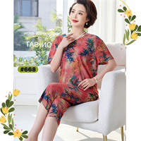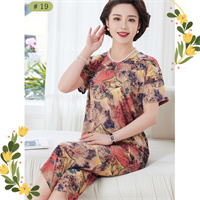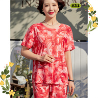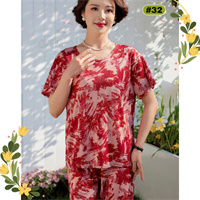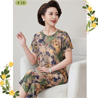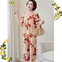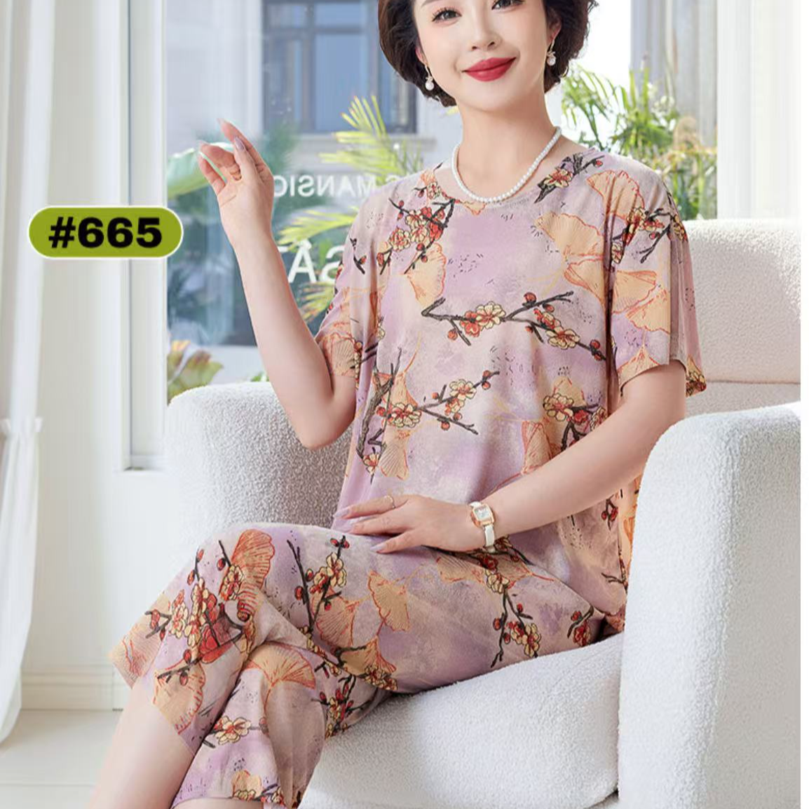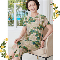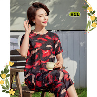 冰絲涼感媽媽套裝 夏季冰絲睡衣女家居服短袖兩件套寬鬆休閒