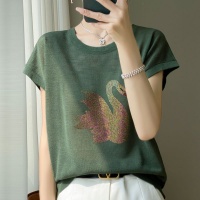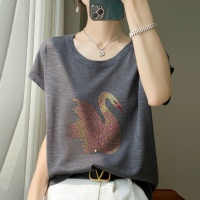 【新品上市】涼爽竹節棉針織短袖 重工天鵝燙鑽 冰絲圓領半袖 時尚內搭打底衫 潮流洋氣