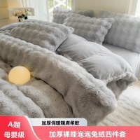 可水洗/機洗 解放雙手 【兔毛絨四件套】雙面加絨 雙人床1.5m兔毛絨床單四件套 冬季加厚牛奶絨枕套/床單/被套