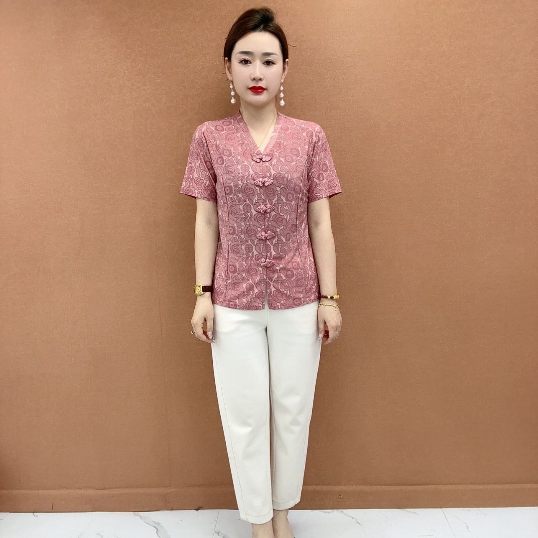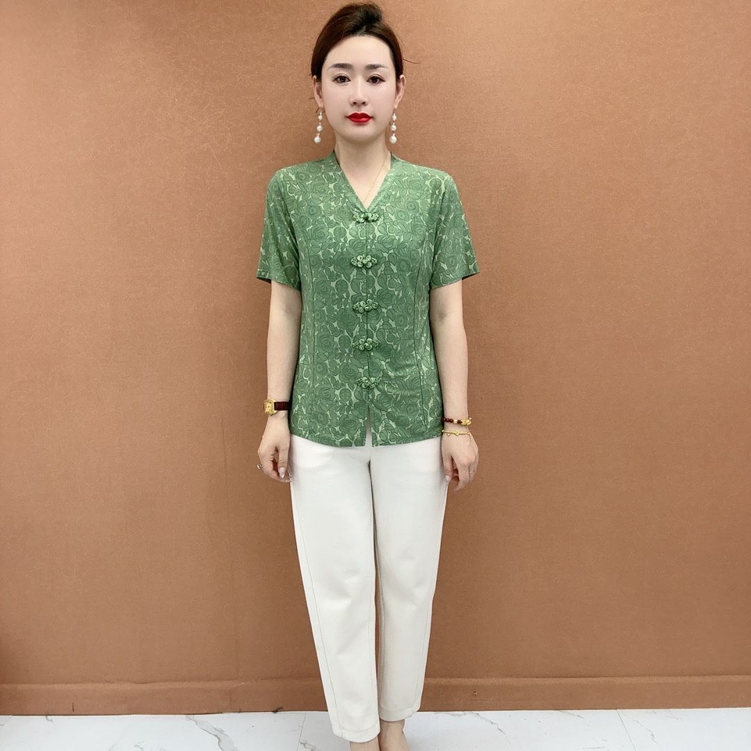 盤扣蘊東方韻 提花藏巧思 短袖中式衫 不挑年紀身材 穿出新意