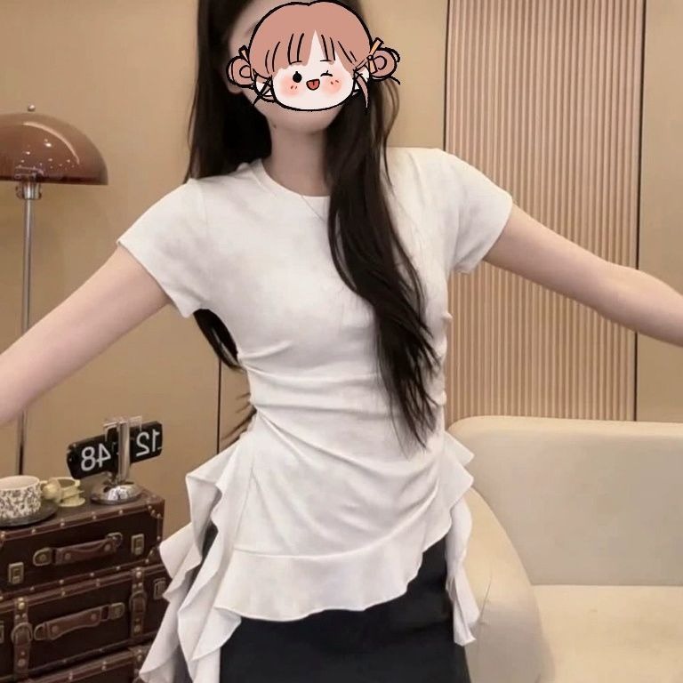 藏不住的仙氣~休閒中帶點女人味 荷葉邊下擺層次有型,彈力收腰小纖女